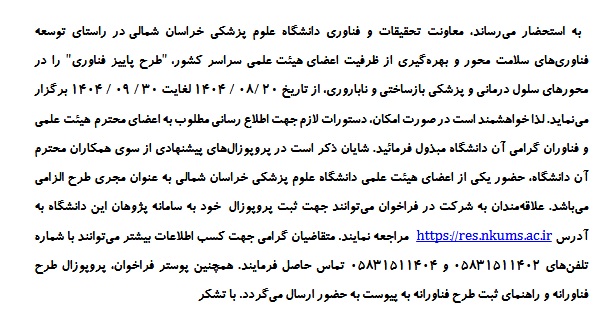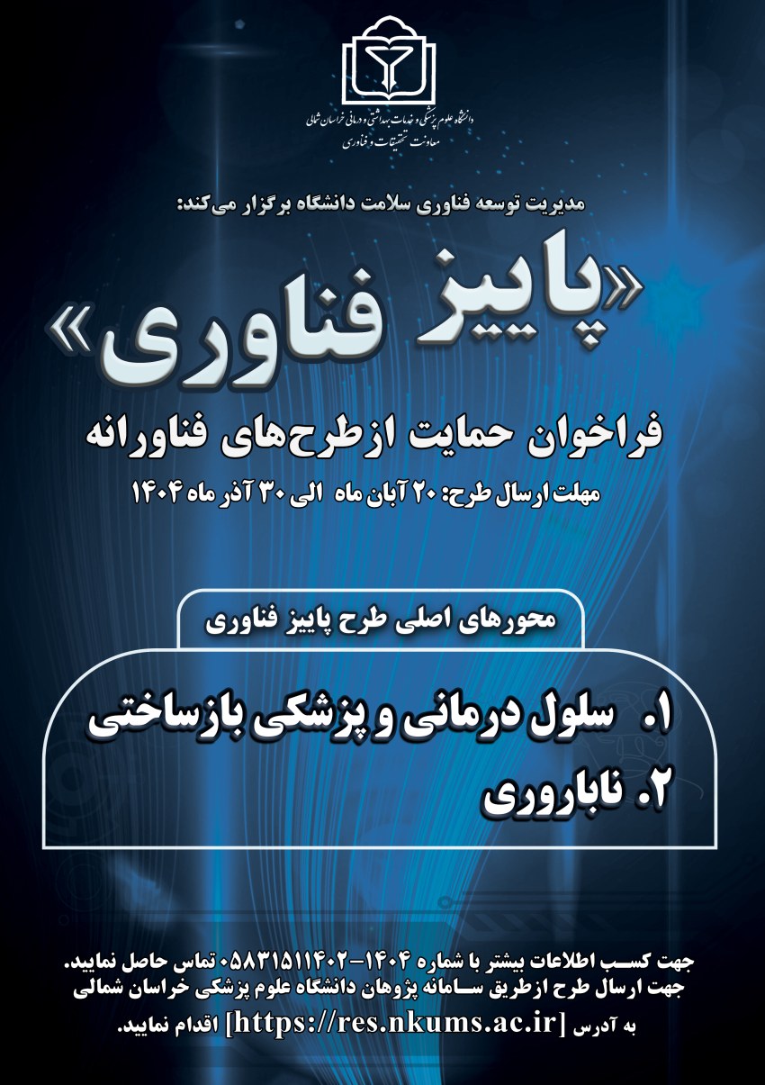 فراخوان کشوری حمایت از طرح های فناورانه حوزه سلامت دانشگاه علوم پزشکی خراسان شمالی
