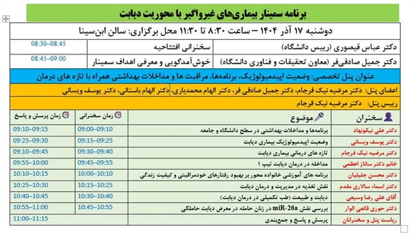 برنامه سمینار های بیماری های غیرواگیر با محوریت دیابت